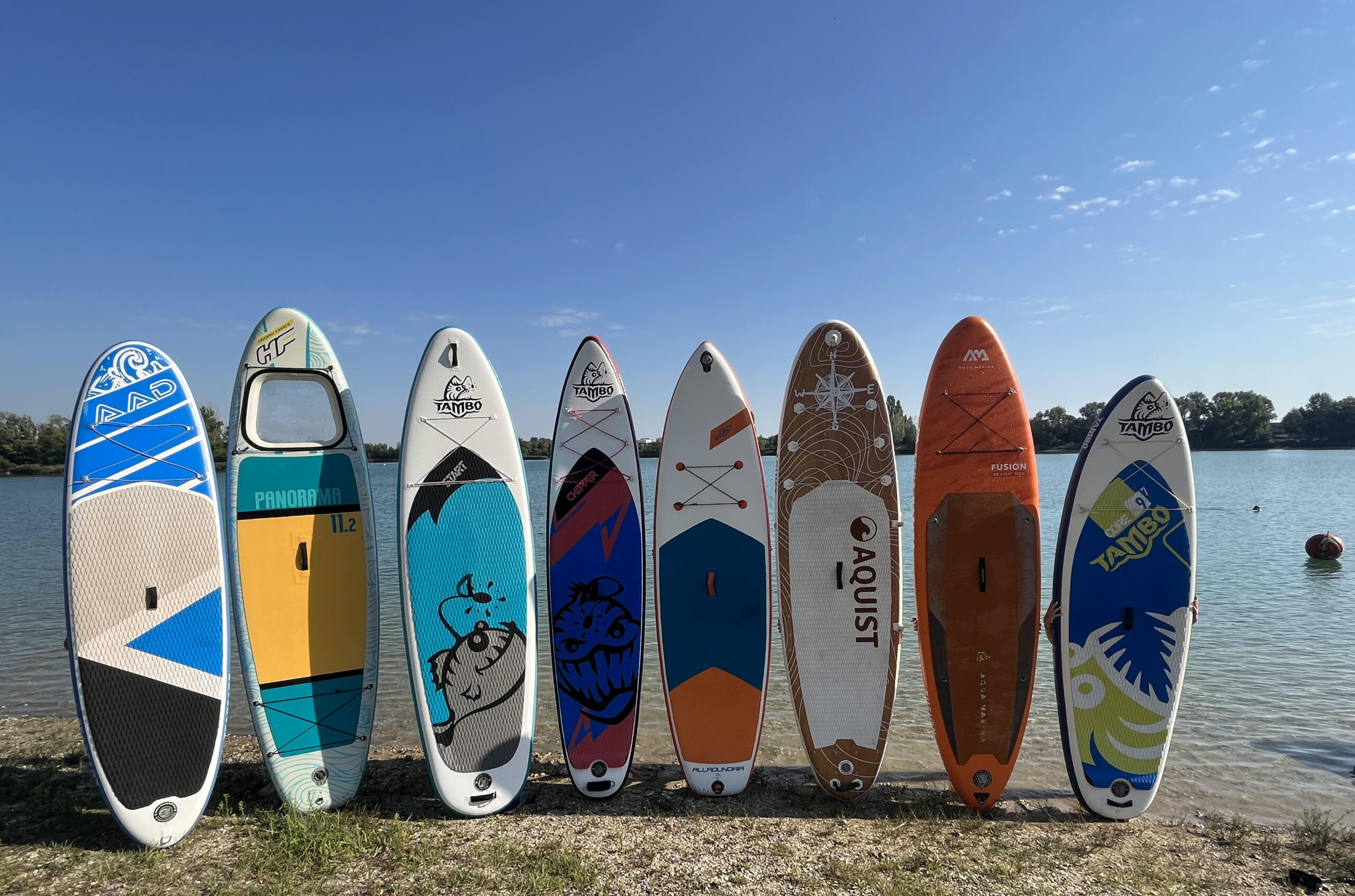 Široký výber paddleboardov, mali sme šťastie a stretli sme rovno majiteľa, ktorý nám so všetkým rád poradil a pomohol nám dať paddleboard aj na vodu.